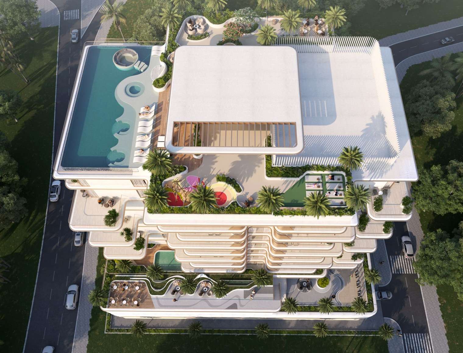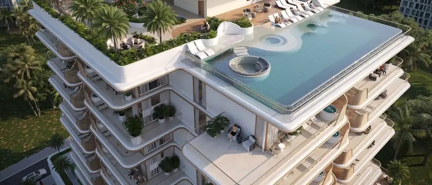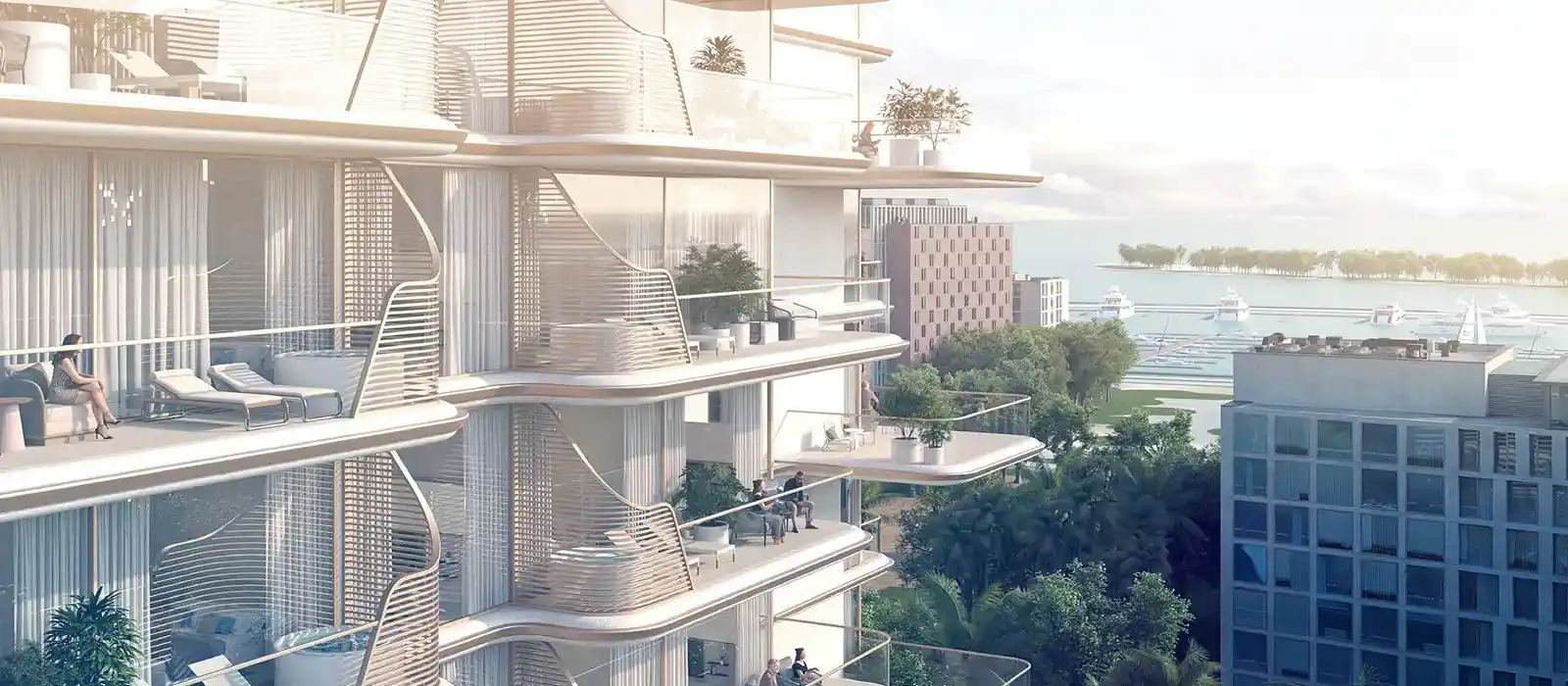 The project features apartments and duplexes with panoramic views of the sea and city skyline,